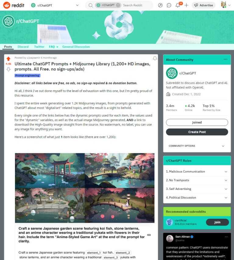 Link: https://www.reddit.com/r/ChatGPT/comments/12v900o/ultimate_chatgpt_prompts_midjourney_library_1200/?rdt=53332&onetap_auto=true